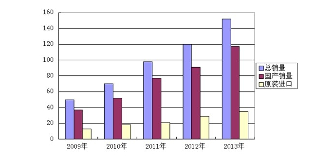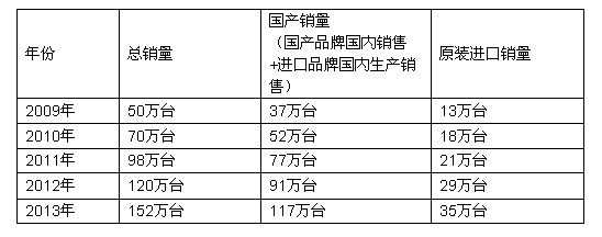據統計,2013年中國市場燃氣采暖熱水爐銷量為152萬臺。其中國產品牌國內銷售總量為92萬臺,進口品牌在國內生產銷售量為25萬臺;原裝進口品牌進口總銷量為35萬臺,其中節能型的產品冷凝式燃氣采暖熱水爐全年銷量為3萬臺。